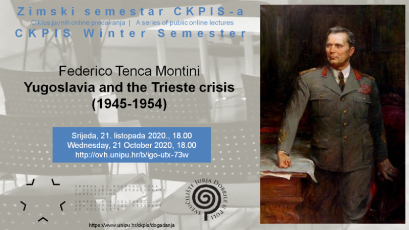 Prvo predavanje u ciklusu Zimski semestar CKPIS-a održat će Federico Tenca Montini, povjesničar sa Sveučilišta u Trstu. Doktorirao je na sveučilištima u Teramu i Zagrebu, na temu Tršćanske krize. Disertacija je objavljena u Italiji, a u pripremi je i hrvatsko izdanje. Utvrđivanje državne granice i Tršćanska kriza bili su u središtu jugoslavensko-talijanskih odnosa po završetku Drugog svjetskog rata. Utemeljeno na novim arhivskim istraživanjima, predavanje će se baviti djelovanjem jugoslavenske diplomacije, povezivanjem sa Zapadom poslije sukoba s Informbiroom i odnosom prema Slobodnom Teritoriju Trsta. Predavanje će biti održano na engleskom jeziku u virtualnoj dvorani.