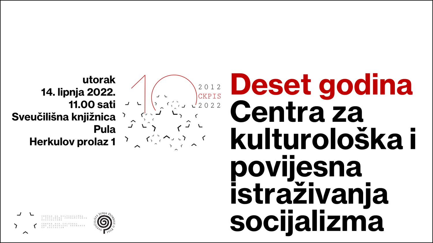 Predstavljanjem svoje djelatnosti i okruglim stolom sveučilišni Centar za kulturološka i povijesna istraživanja socijalizma proslavio je 14. lipnja 2022. u Sveučilišnoj knjižnici u Puli desetogodišnjicu rada. Prisutne u velikoj čitaonici pozdravili su Robert Matijašić kao rektor u vrijeme osnivanja Centra, prodekan Filozofskog fakulteta Ante Matan, koordinator istraživačkih potpora u Hrvatskoj zakladi za znanost Dario Lečić te Krunoslav Stojaković, voditelj ureda Zaklade Rosa Luxemburg za jugoistočnu Europu. Uvodno izlaganje o dosadašnjem radu Centra održao je Igor Duda istaknuvši istraživanja i projekte, potrebu zapošljavanja mladih znanstvenika, izdavačku djelatnost, skup Socijalizam na klupi, Doktorsku radionicu, međunarodnu mrežu i Newsletter te više od stotinu javnih događanja u organizaciji Centra. Na okruglom stolu Perspektive kulturoloških i povijesnih istraživanja socijalizma sudjelovali su Damir Agičić (izdavačka kuća Srednja Europa, Zagreb), Tvrtko Jakovina (Filozofski fakultet Sveučilišta u Zagrebu), Tanja Petrović (Znanstveno-istraživački centar Slovenske akademije znanosti i umjetnosti, Ljubljana) i Ines Prica (Institut za etnologiju i folkloristiku, Zagreb), uz Andreu Matoševića kao moderatora. CKPIS zahvaljuje Sveučilišnoj knjižnici na gostoprimstvu, gostima i publici na sudjelovanju te kolegicama i kolegama iz brojnih europskih sveučilišta i instituta na upućenim čestitkama. (Godišnjica u tisku: Glas Istre, Novosti.)