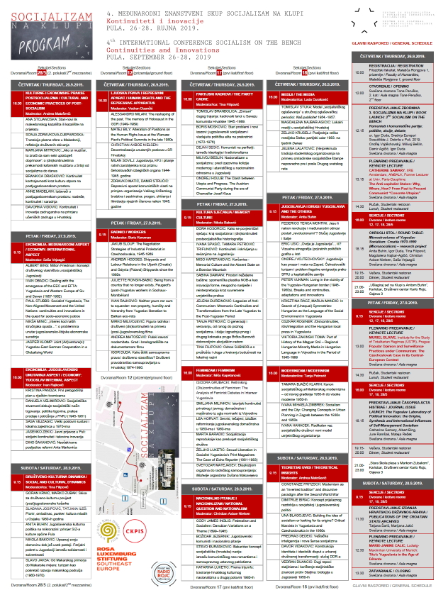 Za razliku od važnih godina koje su obilježile teme dviju prošlih konferencija, ovoga puta nismo se oslonili na obljetnice. U europskom kontekstu tema bi mogla izazvati asocijacije na 1989., no to nam nije bila namjera jer u povijesti Jugoslavije, koja je okosnica naših skupova, sljedeće dvije godine neusporedivo jače odjekuju. Ipak, temom Kontinuiteti i inovacije želja nam je obuhvatiti prostor širi od jugoslavenskoga, bilo kao samostalnu temu, u kontaktu ili komparativno, te – mnogo važnije – vrijeme dulje od trajanja jednostranačkih socijalističkih sustava i hladnoratovskih podjela. Socijalističko društvo shvaćalo se kao prijelazno te je sadržavalo obilježja prošlosti i budućnosti, kapitalističkog građanskog i utopijskog komunističkog društva. Zanima nas stoga na što su se komunisti po dolasku na vlast mogli ili morali osloniti, što su zadržali i prilagodili, što su inovativnoga ostvarili i koliko je novoga preživjelo, prenijelo se u postsocijalizam i ondje postalo dobrodošlom baštinom ili neželjenim teretom. Sudionike skupa želimo pozvati da budu svjesni problema nultih godina i političkih povijesnih rezova, zaklinjanja u novo vrijeme u kojem nema povratka na staro, ali i da gledaju preko ustaljenih kronoloških pregrada te u kontinuitetu dugoga trajanja u društvu pronalaze metamorfoze i resemantizacije, spontani i nametnuti zaborav, potisnuta i živa sjećanja. U području politike, gospodarstva, svakodnevice, kulture, umjetnosti i sporta od 1920-ih i od 1940-ih i od 1990-ih do danas prisutno je staro i novo, zaostalo i napredno, trajne vrijednosti i kratkoročni eksperimenti, izmišljene tradicije i potonula kulturna dobra. Sve to i mnogo više od toga teme su o kojima bismo na skupu htjeli slušati i raspravljati.