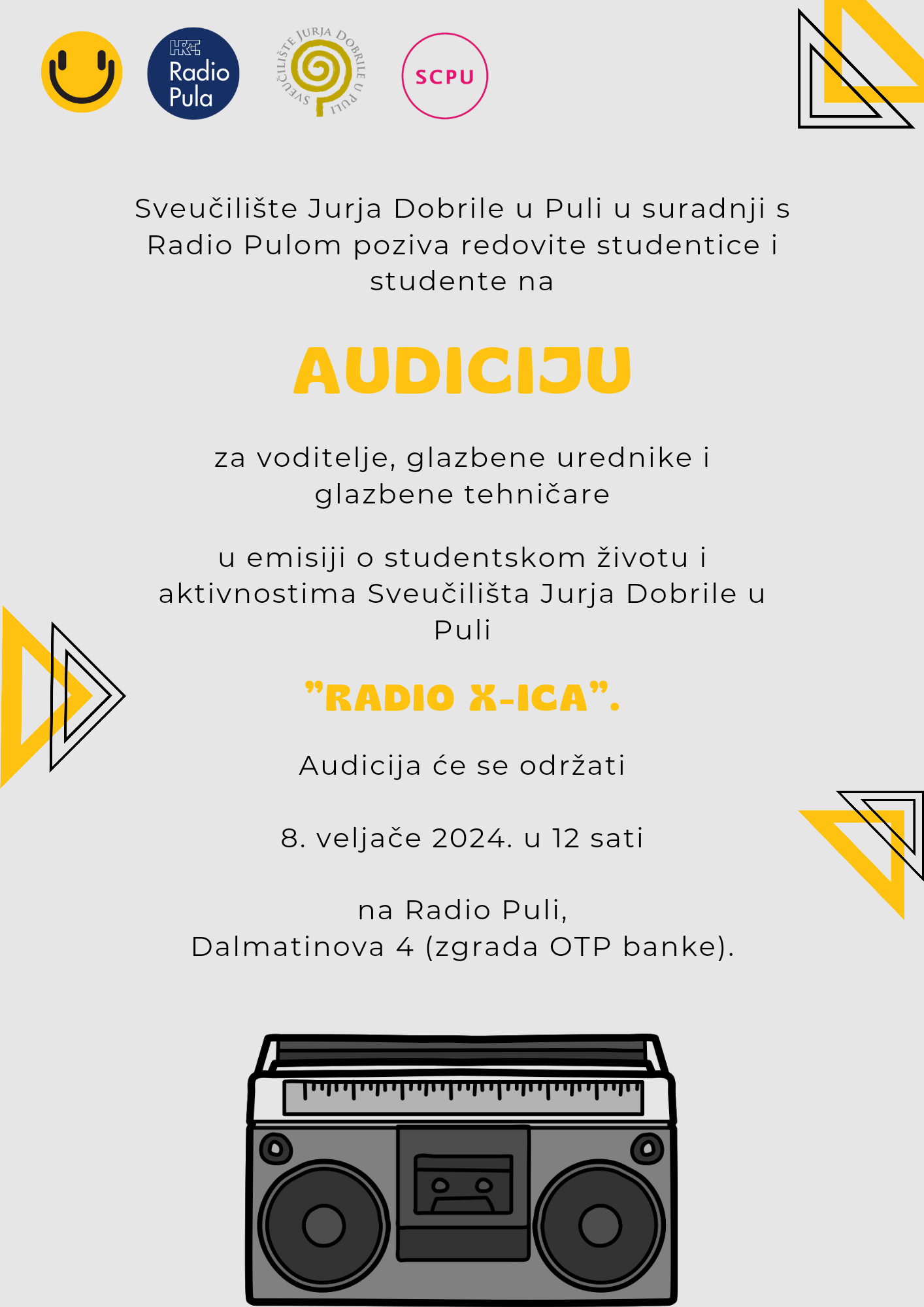 Sveučilište Jurja Dobrile u Puli i Studentski centar u suradnji s Radio Pulom poziva redovite studentice i studente na